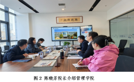 的历史发展、科研教学成果、产学研合作等内容做了详细介绍。尤其是关于管院的产学研合作,培训等工作有国内外丰富的案例阐述。陈院长的介绍引起了与会的大湾区科技创新武汉中心负责人的强烈兴趣,并就此探讨了产学研合作的相关细节和关键问题。