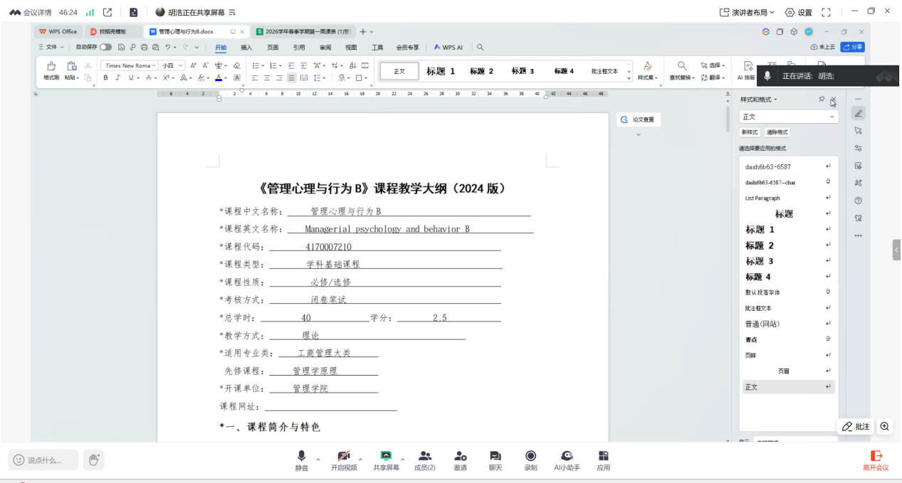 2026年3月1日上午,澳门葡京娱乐城-娱乐城网址 组织与人力资源管理系通过线上会议成功开展了《管理心理与行为》课程的集中备课活动。本次活动旨在进一步提升课程教学质量,优化工商管理大类专业核心课程建设。