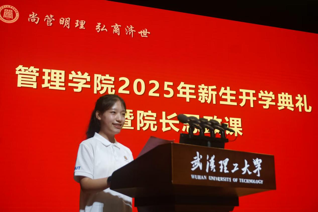研究生新生代表郁馨宇同学号召新生们,珍惜学院优质平台的成长机遇,恪守“尚管明理,弘商济世”的院训指引,将前沿管理理论与生动的中国实践紧密结合,使个人学术成长与国家发展进程紧密相连。她勉励同学们不懈奋斗,为青春篇章增色,为中国式现代化征程注入蓬勃的青年活力。