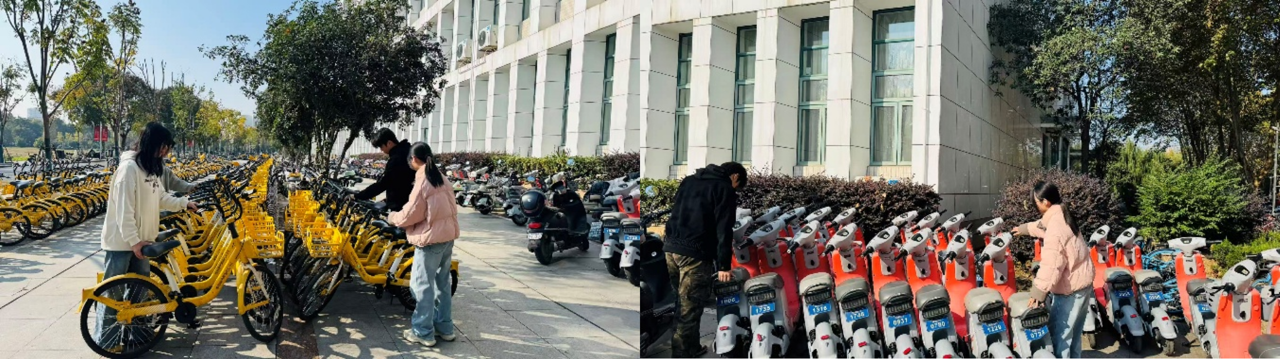 活动期间,团员们分为两组同步推进。在博学主楼前,同学们利用课余时间,将停放凌乱的自行车、电动车逐一归拢,整齐移至指定区域。在整理过程中,大家主动排查未上锁车辆、疏通被占用的消防通道,并向过往同学宣传规范停车的重要性,引导大家共同维护校园秩序,使楼前环境与交通状况得到明显改善。在博学西楼,另一组团员携带清洁工具深入多间空闲教室,细致擦拭课桌、清理黑板、扫除地面垃圾、清洁门窗玻璃,并将散乱的桌椅摆放整齐。同学们不放过任何卫生死角,经过认真清扫,教室环境变得整洁明亮,为师生创造了更为舒心的教学与学习空间。